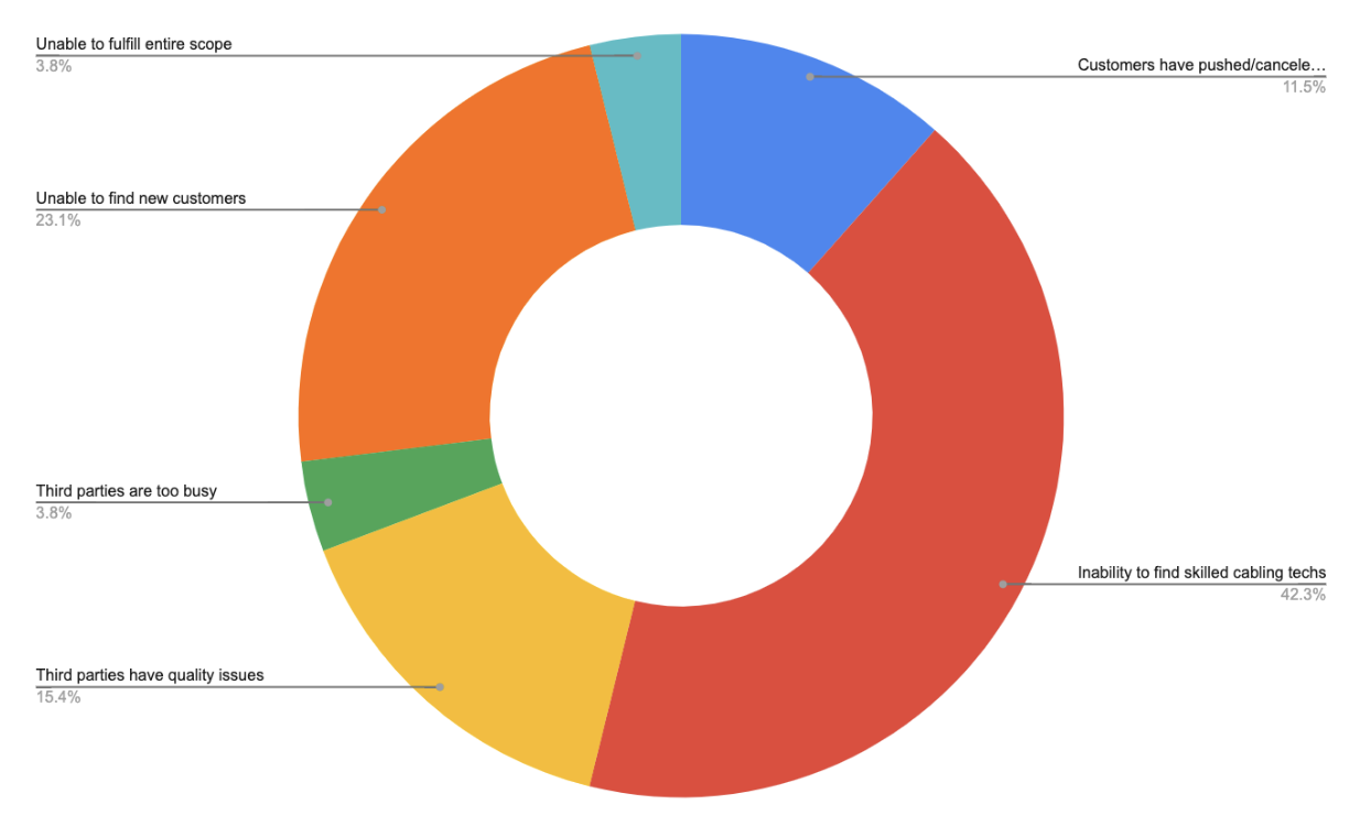 According to a recent Field Nation poll, the inability to find skilled cabling technicians is the top issue inhibiting growth in the cabling industry. Over 50% of respondents identified the talent shortage as a serious challenge.