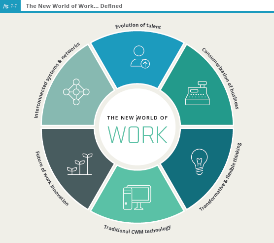Two slices of the “new world of work” graphic above represent just how far talent engagement has come in recent years:
