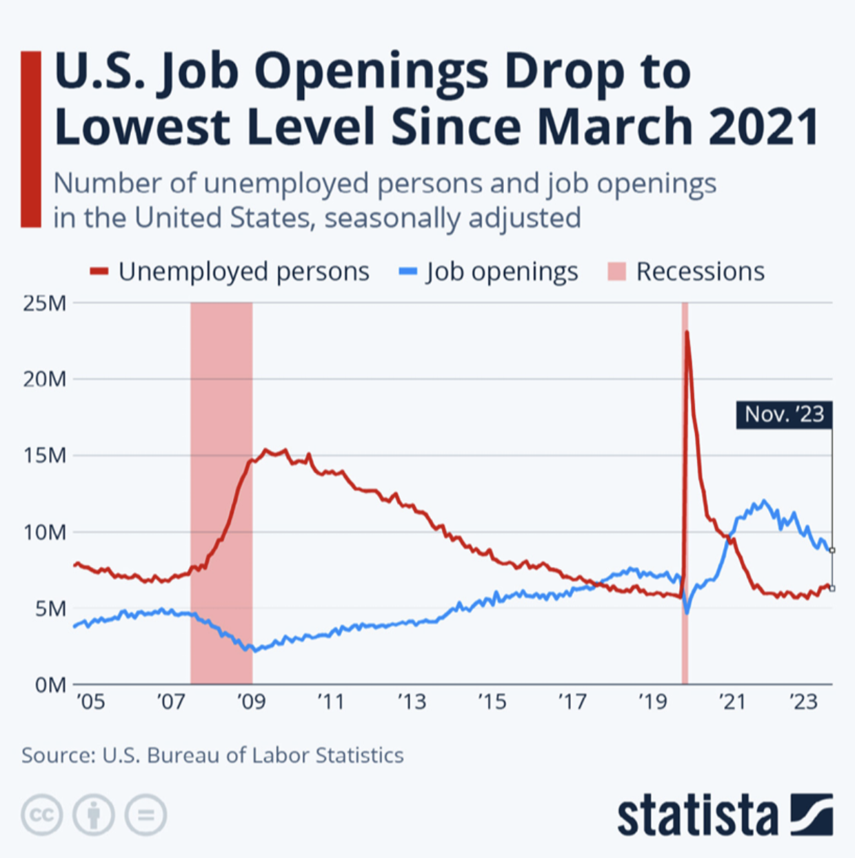 As we step into 2024, the economic landscape shows mixed signs. Some economists are cautiously optimistic about a “soft landing,” while others think a recession is merely deferred. A recent survey of leading economists indicates a decrease in the probability of recession from 48% to 39%.