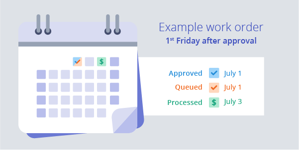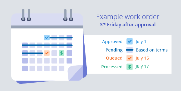 When reviewing work order details, you’ll be able to see work order payment terms. Work orders that reflect payment terms 14 days or longer will be displayed with the icon below.