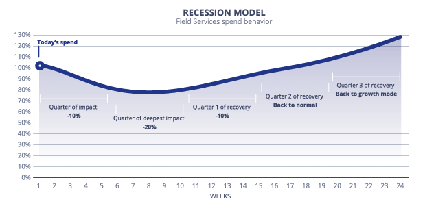 Here’s the bottom line: In a potential recession scenario, we project the same L-shaped recovery described in the previous section. The timeline will likely be compressed into 9-12 months, but it will follow the same general recovery pattern. As you can see, the third quarter of recovery is when we expect field service customer spending behavior to return to growth mode––as high as 20% above current levels.