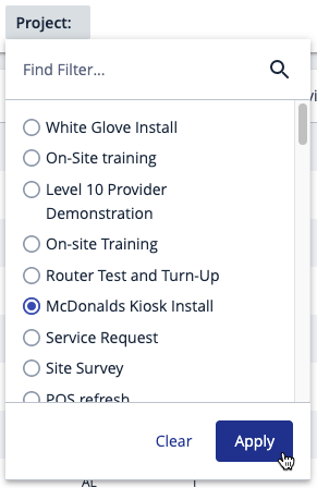 Apply your original filter criteria, which can be found in the Metadata sheet of the Excel file you used to create a blended rate. In addition to that criteria, add a filter for “Project” containing the relevant work orders. With this filter applied, the per-site pricing data is limited to only those work orders that were a part of your Field Nation project. You can now export this data and use it to compare against your bid pricing.
