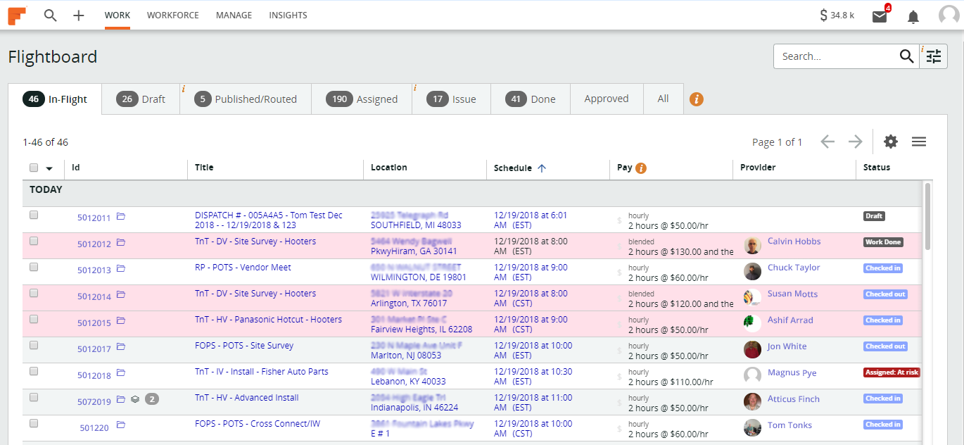 To prevent any mishaps, companies need to monitor everything in one place. With Field Nation, companies can log in and see all their active work on one screen. Here companies can see the status of each work order including any that are “at risk” or missing an assignment.