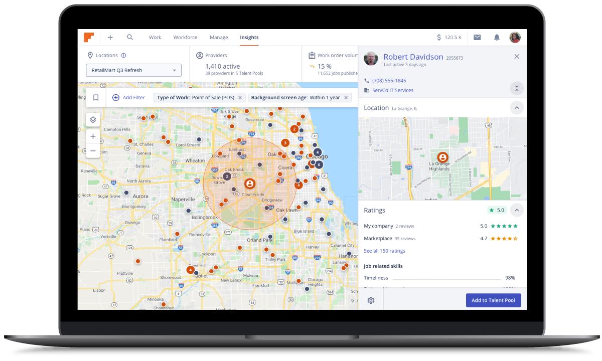 With Smart Talent Pools, companies set their criteria and the platform manages talent pools on their behalf. They don’t have to worry about outdated talent pools or techs going on site that don’t meet their qualifications. This feature is ideal for any company that wants to take the manual work out of managing their talent pools.”